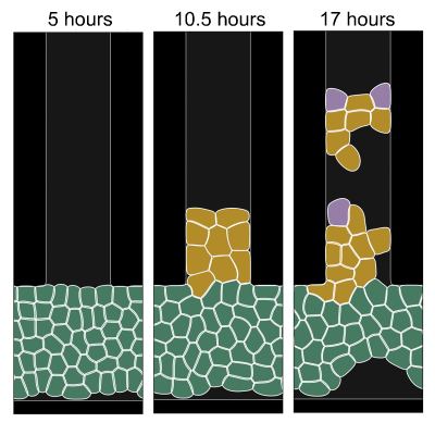 What controls whether cells - or clusters of cells - break off from an invading cancerous front? We use a phase field model exploring how confinement, adhesion, and chemotaxis drive cell dissociation that can lead to metastasis - capturing behavior observed in experiments with microfluidic channels.